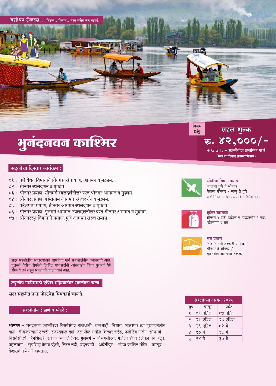 Pune to Srinagar via Delhi | Srinagar to Pune via Delhi.