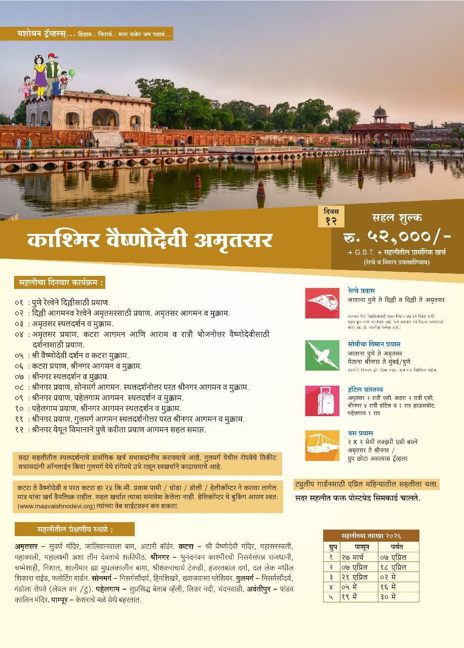 Pune to Amritsar | Srinagar to Pune/Mumbai.