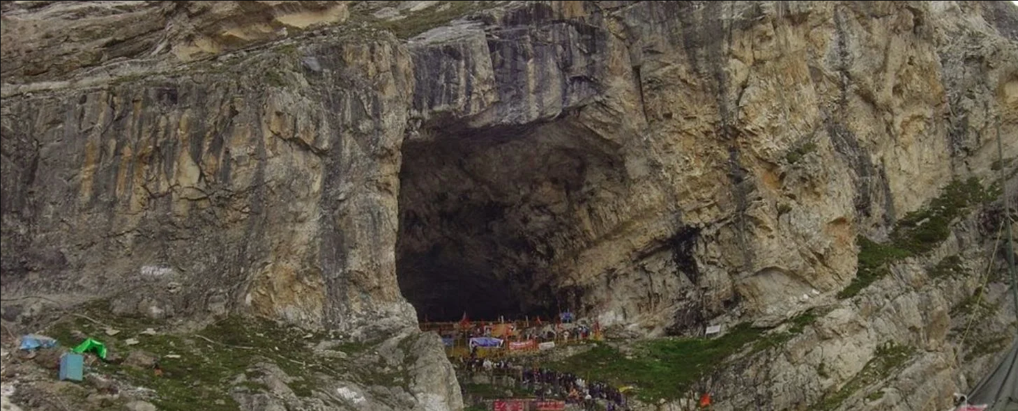 The holy cave situated in a narrow gorge at the farther end of Lidder Valley, Amarnath Shrine stands at 3,888m, The cave is surrounded by snowy mountains which are covered by snow and is open for a very short period of time in summer for the pilgrims.